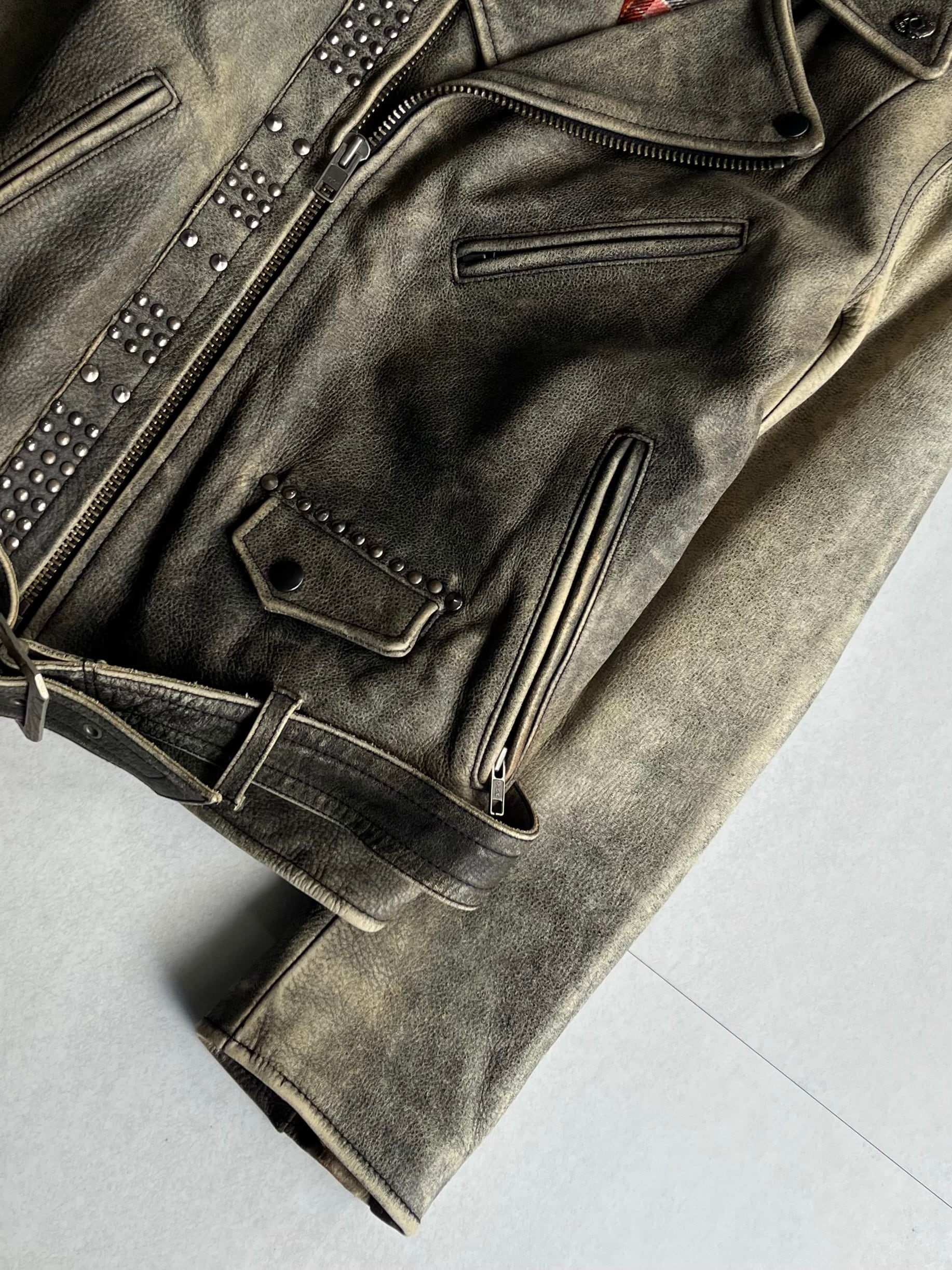 "OZONE ROCKS"studs design leather jacket